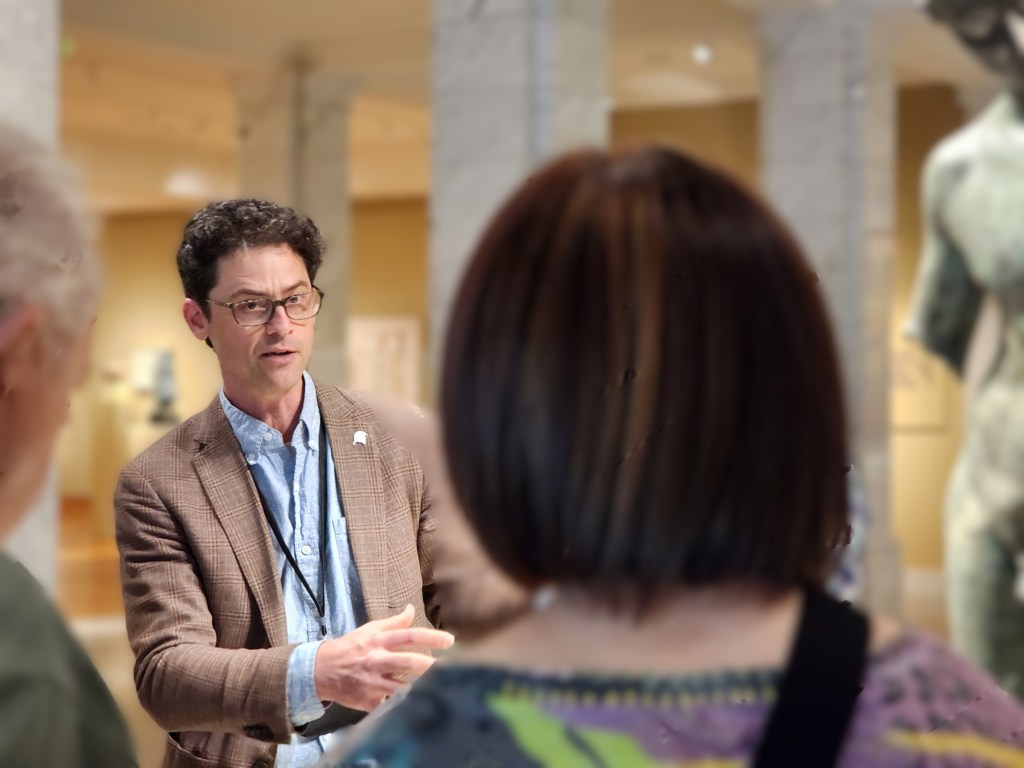 On May 14, 2025, the HPS Board gathered for their monthly meeting at the Cleveland Museum of Art for a private tour directed by Curatorial Advisor and CMA Curator of Greek and Roman Art, Seth Pevnick. Among the many treasures held by the CMA are the Philosopher, on temporary display before its return to Turkiye, and the Cleveland Apollo and its relation to the urns and pottery in the Dr. John and Helen Collis Family Gallery.